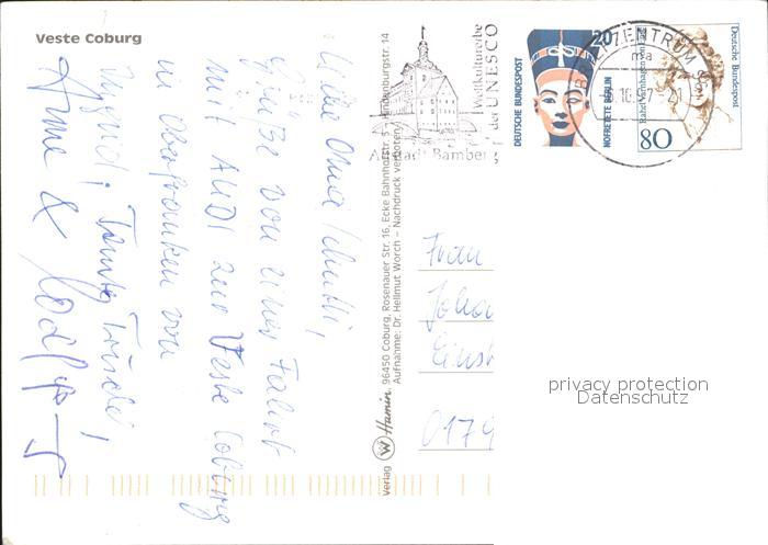 72372314 alte Postkarte Coburg Bayern Veste postalisch gelaufen Erhaltung siehe scans KatCode: 11110009463000