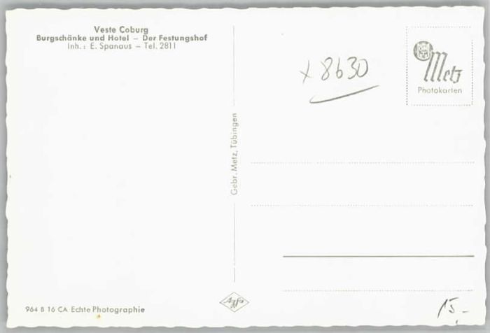 40638675 Coburg Bayern Veste Burgschaenke Hotel postalisch nicht gelaufen Alte Ansichtskarte Postkarte Katcode 11110009463000