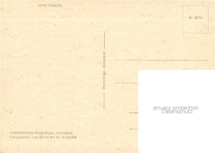 73755806 Coburg Bayern Veste Coburg Fliegeraufnahme postalisch nicht gelaufen Erhaltung siehe scans [FriedD77] Frie Katcode 11110009463000