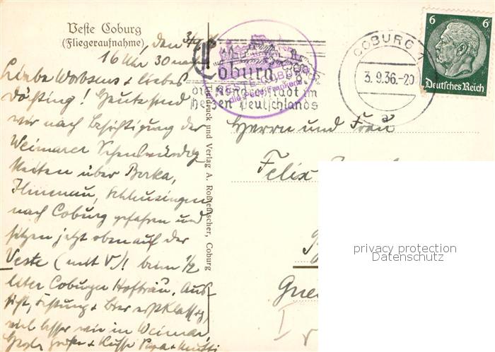 73808088 Coburg Bayern Veste Coburg Fliegeraufnahme postalisch gelaufen Erhaltung siehe scans [FriedD77] alte Postkarte Frie Katcode 11110009463000