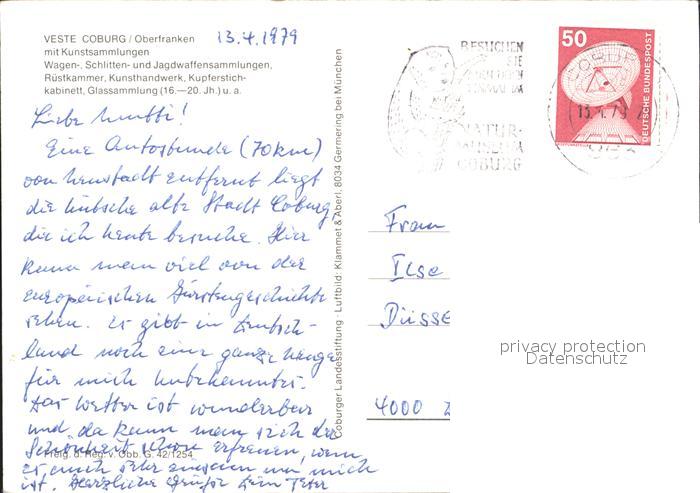 72155426 alte Postkarte Coburg Bayern Veste Fliegeraufnahme postalisch gelaufen Erhaltung siehe scans KatCode: 11110009463000