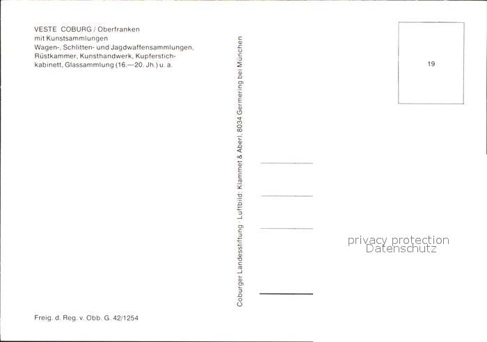 71926916 Coburg Bayern Veste Fliegeraufnahme postalisch nicht gelaufen Erhaltung siehe scans KatCode: 11110009463000