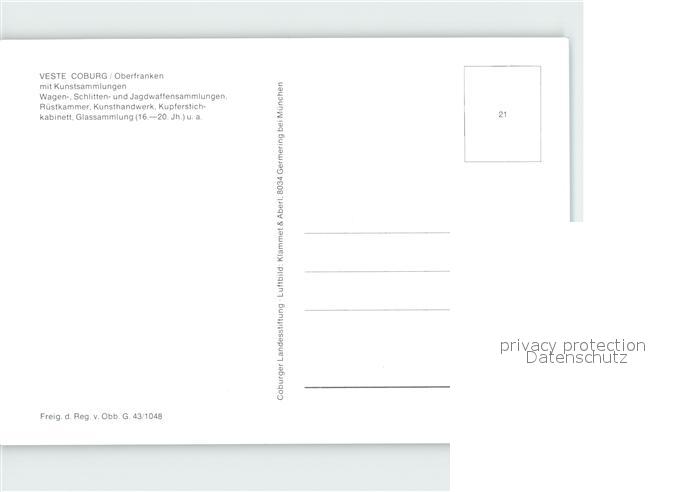 72202760 Coburg Bayern Veste Fliegeraufnahme postalisch nicht gelaufen Erhaltung siehe scans KatCode: 11110009463000