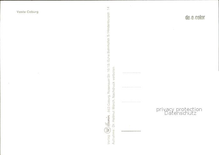 72381905 Coburg Bayern Veste Winter postalisch nicht gelaufen Erhaltung siehe scans KatCode: 11110009463000