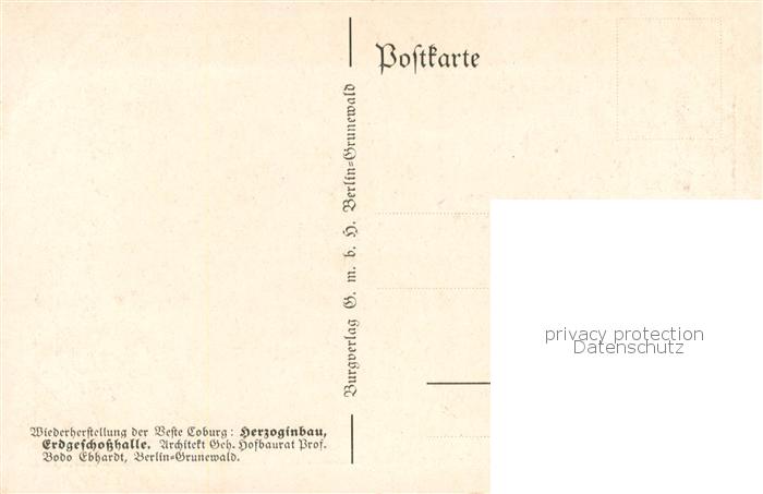 73779606 Coburg Bayern Wiederherstellung der Veste Herzoginbau Erdgeschosshalle postalisch nicht gelaufen Erhaltung siehe scans [FriedD77] Frie Katcode 11110009463000