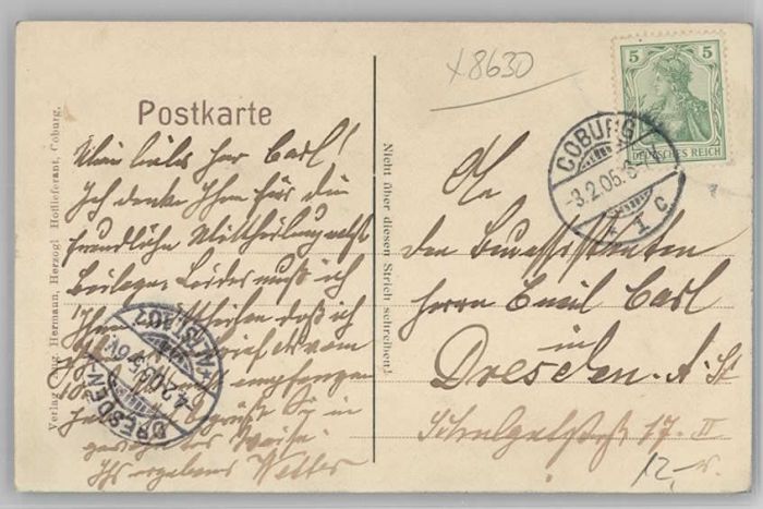 40236469 Coburg Bayern x 1905 postalisch gelaufen Alte Ansichtskarte Postkarte alte Postkarte Katcode 11110009463000