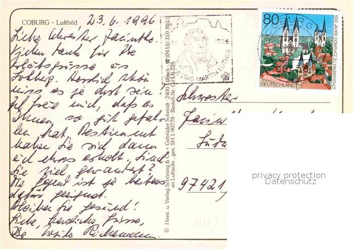 72888962 alte Postkarte Coburg Fliegeraufnahme postalisch gelaufen Erhaltung siehe scans [AndreD76] KatCode: 11110009463000