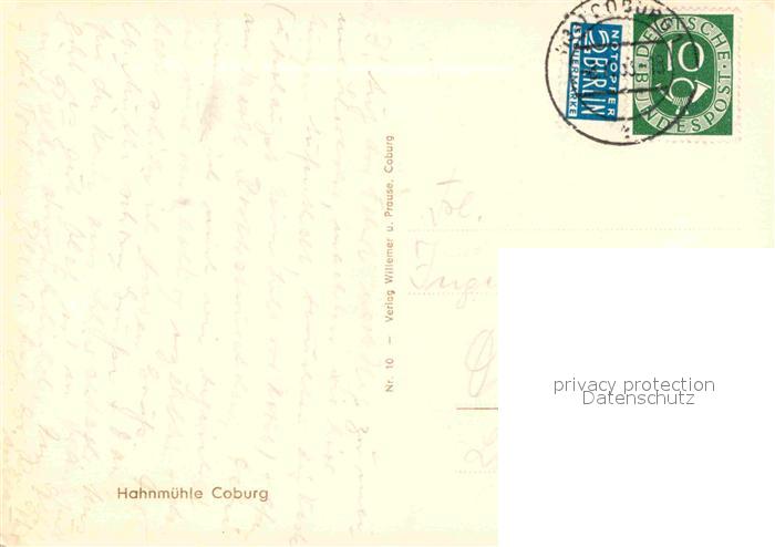 72842588 alte Postkarte Coburg Hahnmuehle postalisch gelaufen Erhaltung siehe scans [NatalD47] KatCode: 11110009463000