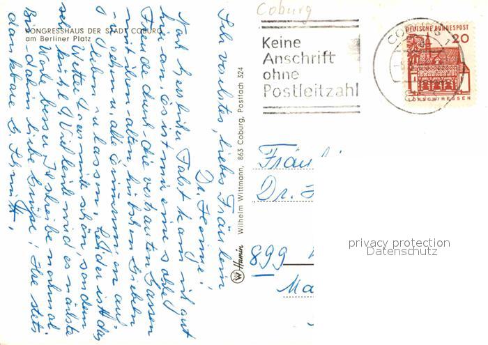 72888235 alte Postkarte Coburg Kongresshaus am Berliner Platz postalisch gelaufen Erhaltung siehe scans [LiesaD40] KatCode: 11110009463000