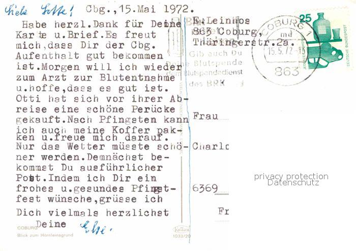 72919585 alte Postkarte Coburg Panorama Blick zum Hoernleinsgrund postalisch gelaufen Erhaltung siehe scans [FriedD77] KatCode: 11110009463000