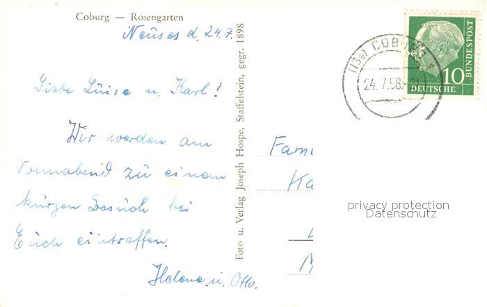 73308285 alte Postkarte Coburg Rosengarten Brunnen Skulpturen postalisch gelaufen Erhaltung siehe scans [FriedD77] KatCode: 11110009463000