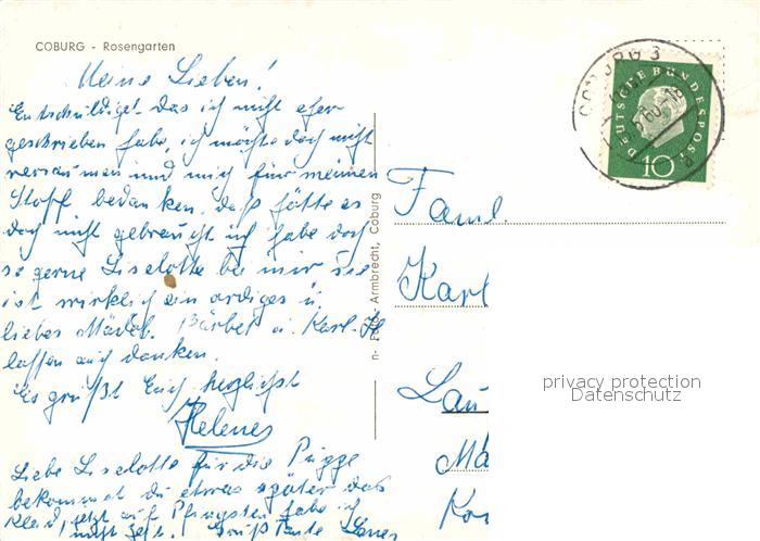 72812643 alte Postkarte Coburg Rosengarten postalisch gelaufen Erhaltung siehe scans [WerneD78] KatCode: 11110009463000