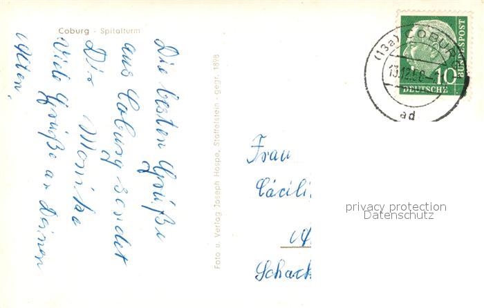 72974951 alte Postkarte Coburg Spitalturm postalisch gelaufen Erhaltung siehe scans [FriedD77] KatCode: 11110009463000