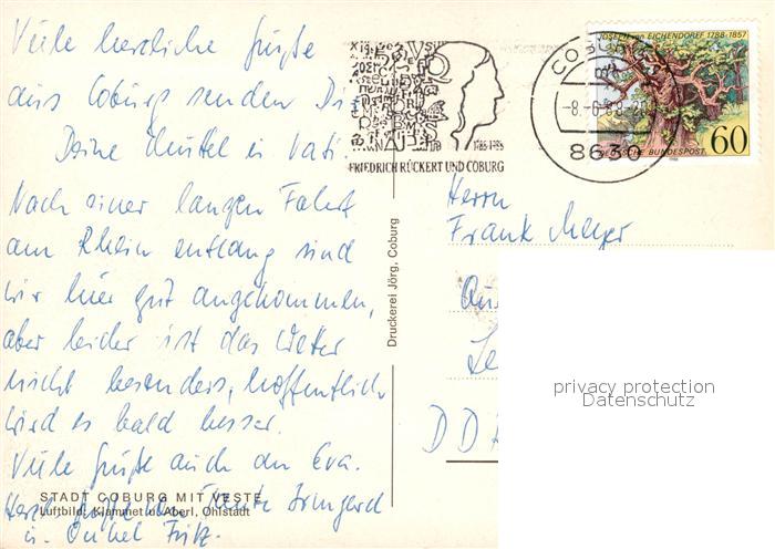 73600029 alte Postkarte Coburg Stadtpanorama mit Veste Fliegeraufnahme postalisch gelaufen Erhaltung siehe scans [FriedD77] KatCode: 11110009463000