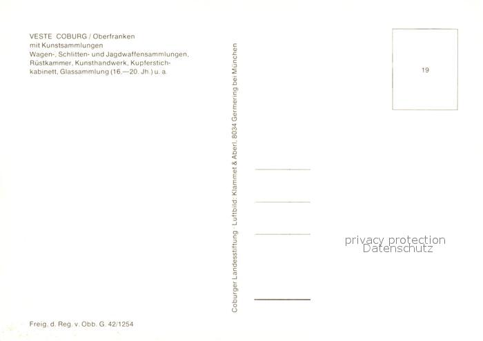 73270349 Coburg Veste Coburg Fliegeraufnahme postalisch nicht gelaufen Erhaltung siehe scans [PaolaD17] KatCode: 11110009463000