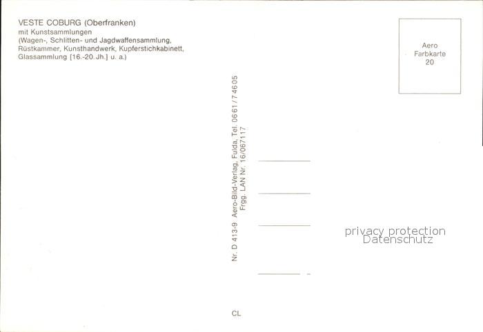 72553365 Coburg Veste Coburg Fliegeraufnahme postalisch nicht gelaufen Erhaltung siehe scans [WerneD78] KatCode: 11110009463000