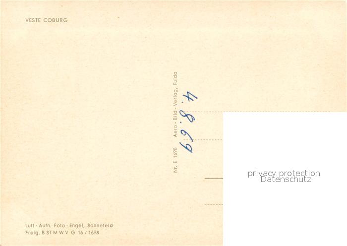 73662805 Coburg Veste Fliegeraufnahme postalisch nicht gelaufen Erhaltung siehe scans [LiesaD40] KatCode: 11110009463000