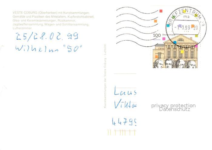 73319931 alte Postkarte Coburg Veste Fliegeraufnahme postalisch gelaufen Erhaltung siehe scans [FriedD77] KatCode: 11110009463000