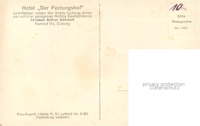 73550794 Coburg Veste mit Hotel Festungshof Fliegeraufnahme postalisch nicht gelaufen Erhaltung siehe scans [WerneD78] KatCode: 11110009463000