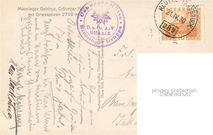 43114627 alte Postkarte Coburgerhuette Berghuette Mieminger Gebirge mit Griesspitzen postalisch gelaufen Erhaltung siehe scans [FriedD77] KatCode: 11390