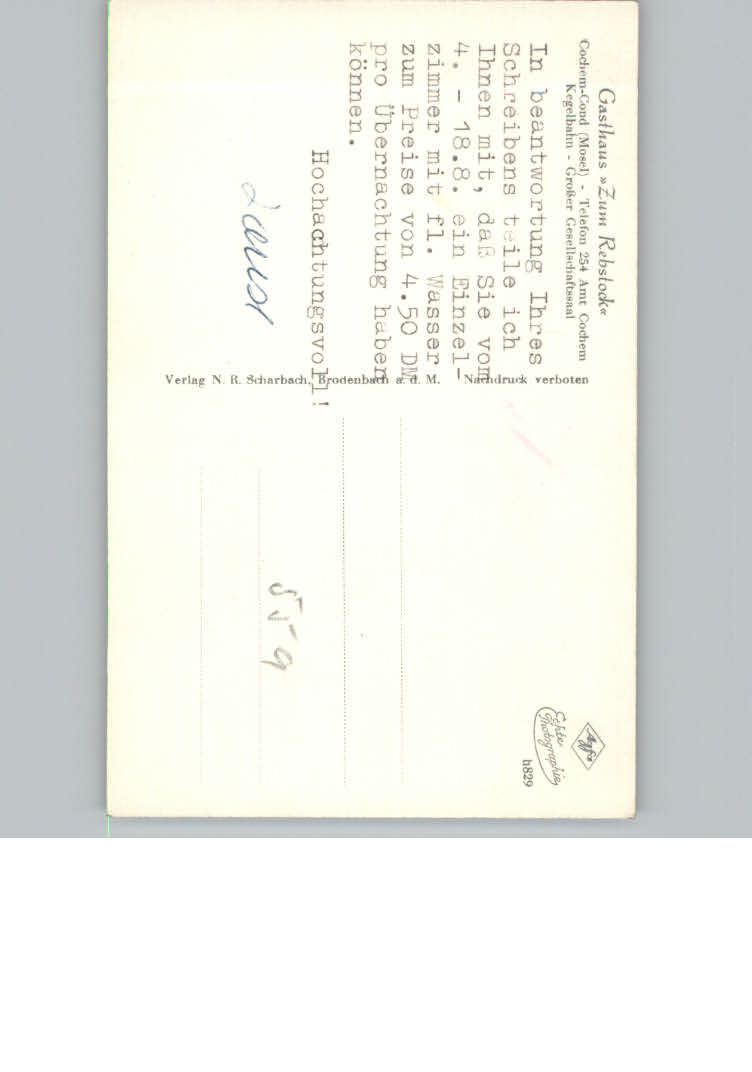 31175926 Cochem Gasthaus Rebstock postalisch nicht gelaufen KatCode: 11110007135020