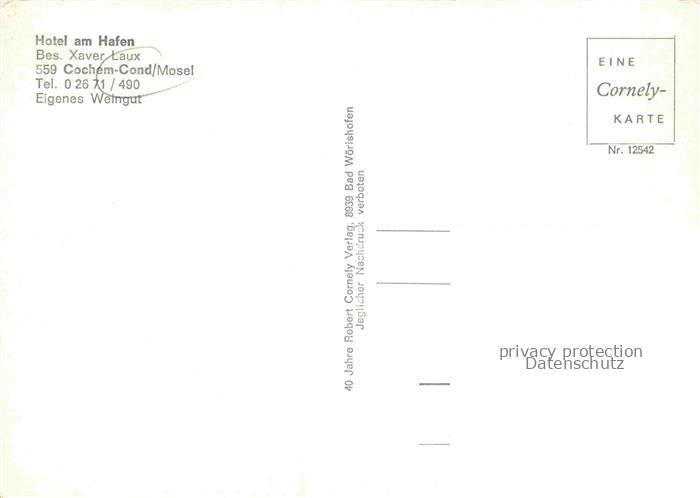 74156569 Cochem Kochem Mosel Hotel-am-Hafen Mosel Weinberge Flussufer Terrasse Weingut Uferpromenade Stellmauer postalisch nicht gelaufen Erhaltung siehe scans [Karloger] KatCode: 11110007135020