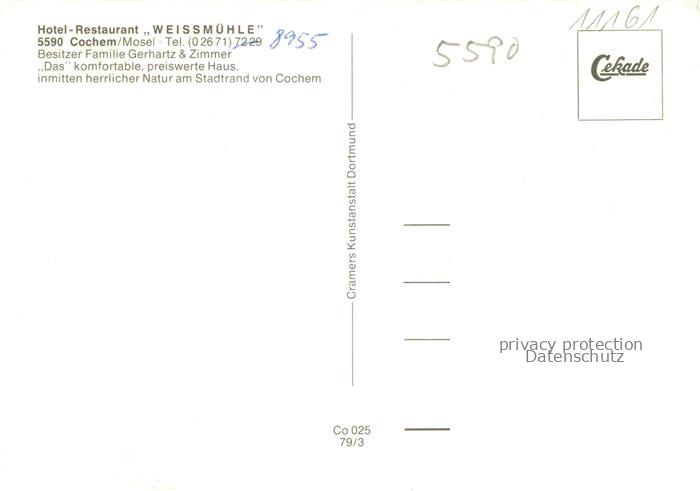 74042646 Cochem Kochem Mosel Hotel Restaurant Weissmuehle postalisch nicht gelaufen Erhaltung siehe scans [FriedD77] KatCode: 11110007135020