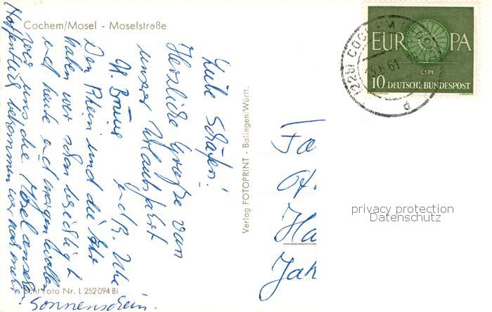 73810467 alte Postkarte Cochem Kochem Mosel Moselstrasse postalisch gelaufen Erhaltung siehe scans [WerneD78] KatCode: 11110007135020