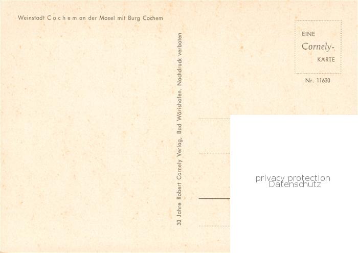73836144 Cochem Kochem Mosel Panorama mit Blick zur Burg Cornely-Karte Nr. 11630 postalisch nicht gelaufen Erhaltung siehe scans [FriedD77] KatCode: 11110007135020
