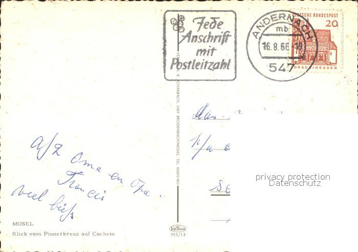 72268602 alte Postkarte Cochem Mosel postalisch gelaufen Erhaltung siehe scans KatCode: 11110007135020