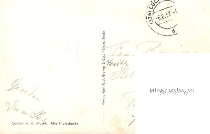 73545569 alte Postkarte Cochem Mosel Alte Thorschaenke postalisch gelaufen Erhaltung siehe scans [KathaD81] KatCode: 11110007135020