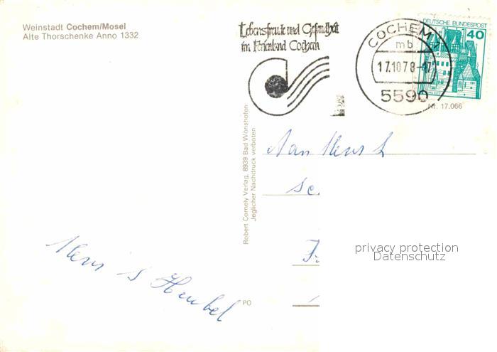 72786646 alte Postkarte Cochem Mosel Alte Thorschenke postalisch gelaufen Erhaltung siehe scans [WerneD78] KatCode: 11110007135020