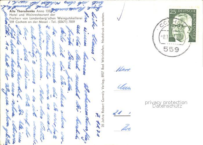 72178001 alte Postkarte Cochem Mosel Alte Thorschenke postalisch gelaufen Erhaltung siehe scans KatCode: 11110007135020