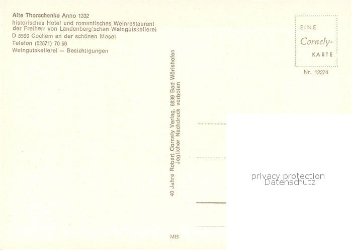 73648138 Cochem Mosel Alte Thorschenke anno 1332 Historisches Hotel Weinrestaurant postalisch nicht gelaufen Erhaltung siehe scans [FriedD77] KatCode: 11110007135020
