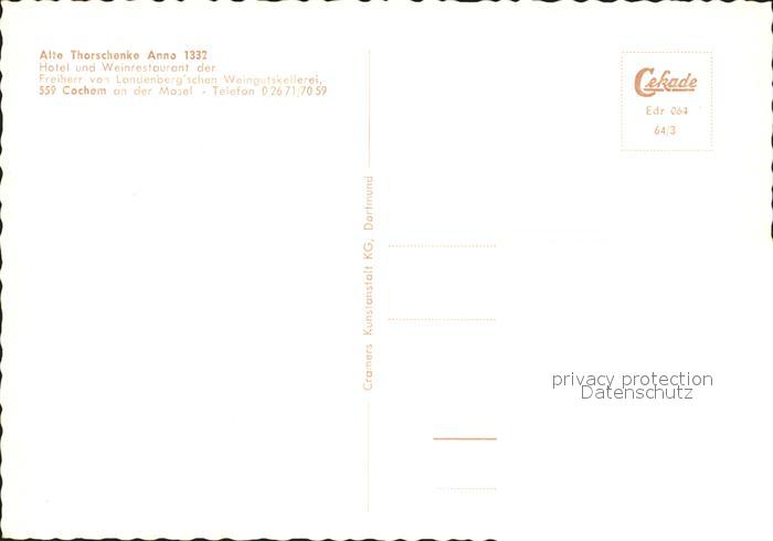 72035634 Cochem Mosel Alte Thorschenke anno 1332 postalisch nicht gelaufen Erhaltung siehe scans KatCode: 11110007135020