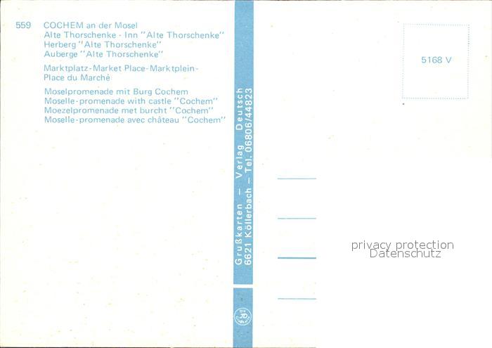 72422121 Cochem Mosel Alte Thorschenke Marktplatz Mosel Promenade Reichsburg postalisch nicht gelaufen Erhaltung siehe scans KatCode: 11110007135020