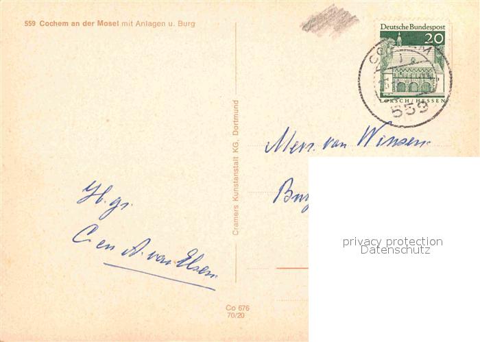 72919417 alte Postkarte Cochem Mosel Anlagen Burg postalisch gelaufen Erhaltung siehe scans [NatalD47] KatCode: 11110007135020