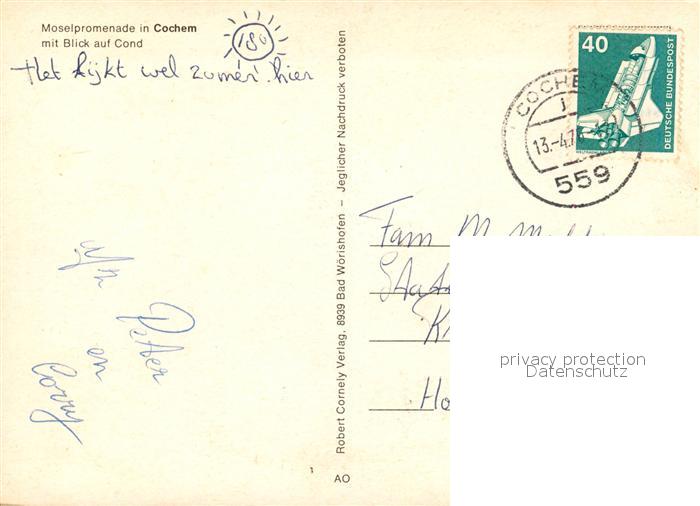 73311379 alte Postkarte Cochem Mosel Blick auf Cond postalisch gelaufen Erhaltung siehe scans [KathaD81] KatCode: 11110007135020