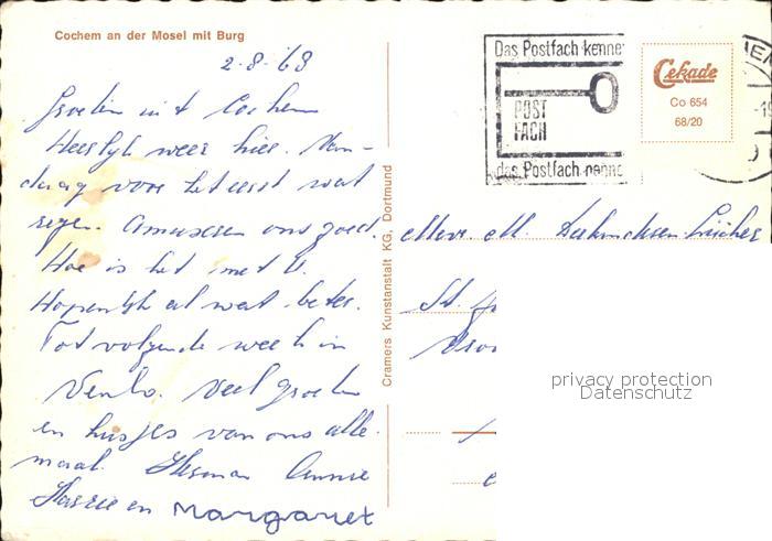 72451994 alte Postkarte Cochem Mosel Blick ueber die Mosel zur Burg postalisch gelaufen Erhaltung siehe scans KatCode: 11110007135020