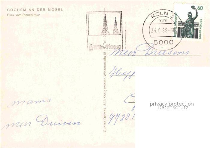 72636752 alte Postkarte Cochem Mosel Blick vom Pinnerkreuz postalisch gelaufen Erhaltung siehe scans [NatalD47] KatCode: 11110007135020
