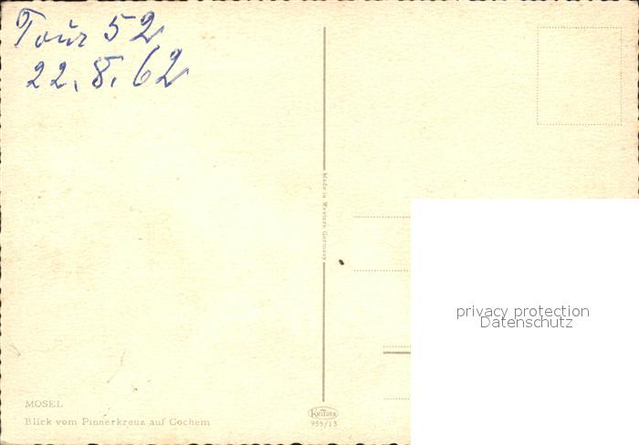 72582278 Cochem Mosel Blick vom Pinnerkreuz postalisch nicht gelaufen Erhaltung siehe scans [WerneD78] KatCode: 11110007135020