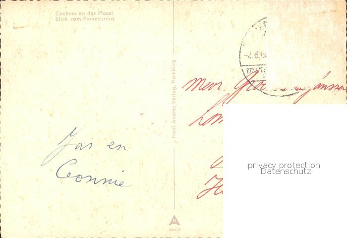 72266466 alte Postkarte Cochem Mosel Blick vom Pinnerkreuz postalisch gelaufen Erhaltung siehe scans KatCode: 11110007135020