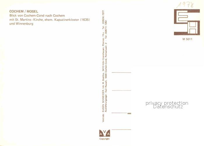 72887347 Cochem Mosel Blick von Cochem Cond mit Kapuzinerkloster und Winnenburg postalisch nicht gelaufen Erhaltung siehe scans [LiesaD40] KatCode: 11110007135020