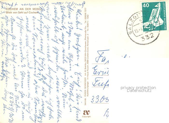 73071229 alte Postkarte Cochem Mosel Blick von Sehl Reichsburg Motorboot Ausflugsdampfer postalisch gelaufen Erhaltung siehe scans [FriedD77] KatCode: 11110007135020