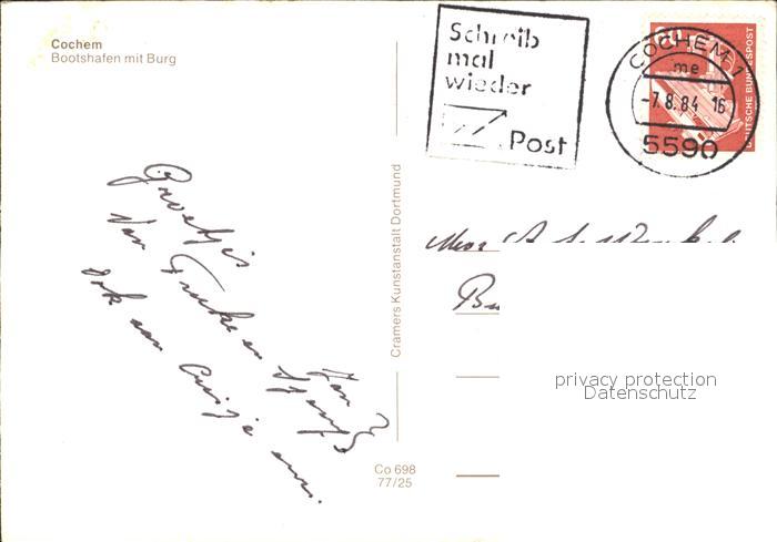 72421045 alte Postkarte Cochem Mosel Bootshafen mit Burg postalisch gelaufen Erhaltung siehe scans KatCode: 11110007135020