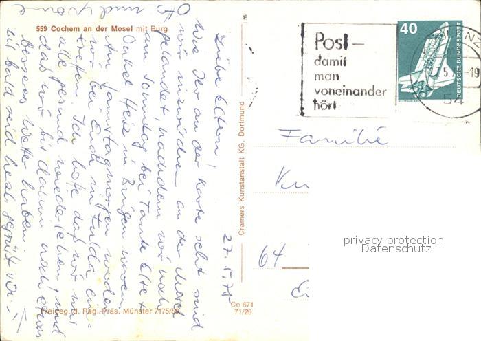 71986163 alte Postkarte Cochem Mosel Burg postalisch gelaufen Erhaltung siehe scans KatCode: 11110007135020
