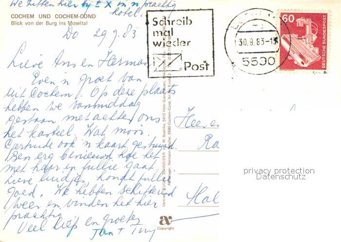 72845283 alte Postkarte Cochem Mosel Burg postalisch gelaufen Erhaltung siehe scans [NatalD47] KatCode: 11110007135020