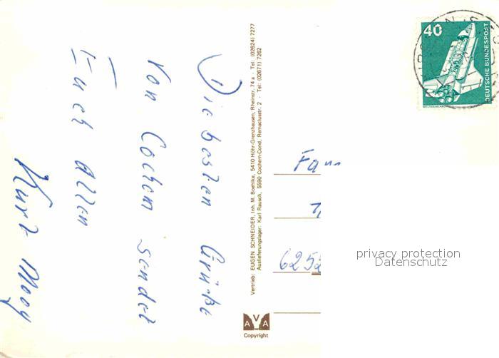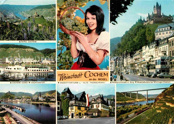 72897336 alte Postkarte Cochem Mosel Burg Cochem Yachthafen Moselpartie Endertorturm Moselpromenade Moseltalbruecke postalisch gelaufen Erhaltung siehe scans [WerneD78] KatCode: 11110007135020