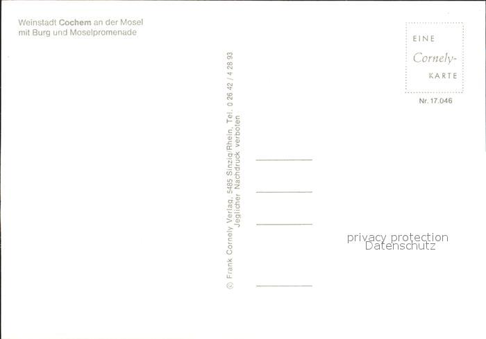 72223805 Cochem Mosel Burg Moselpromenade postalisch nicht gelaufen Erhaltung siehe scans KatCode: 11110007135020