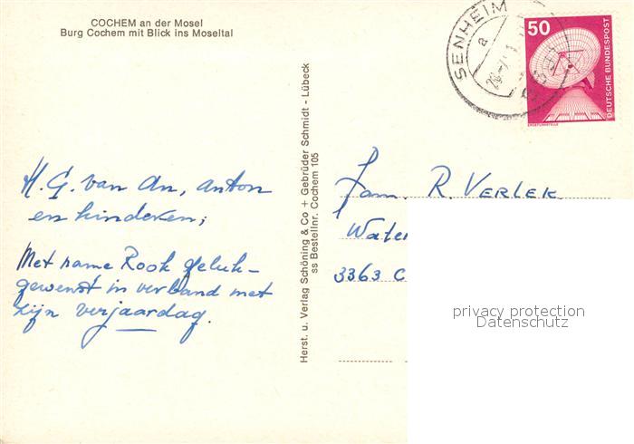 73311764 alte Postkarte Cochem Mosel Burg Moseltal postalisch gelaufen Erhaltung siehe scans [LiesaD40] KatCode: 11110007135020